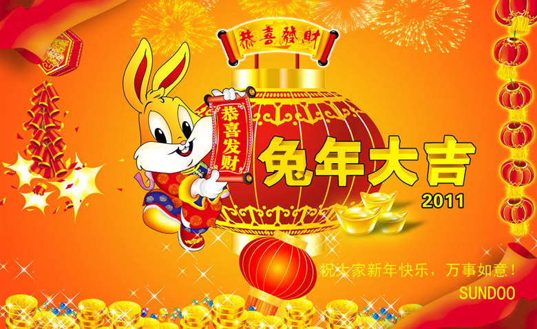 金虎長(zhǎng)嘯辭舊歲,玉兔獻(xiàn)瑞迎新年!在這里溫州山度儀器有限公司向各行業(yè)用戶、山度經(jīng)銷商、各級(jí)代理商和公司全體員工拜年,恭祝大家兔年新春愉快、身體健康、合家吉祥! 溫州山度儀器有限公司春節(jié)放假安排:1月23日(星期日)—2月10日(星期四)共十九天;上班時(shí)間:2月11日(星期五農(nóng)歷正月初九)