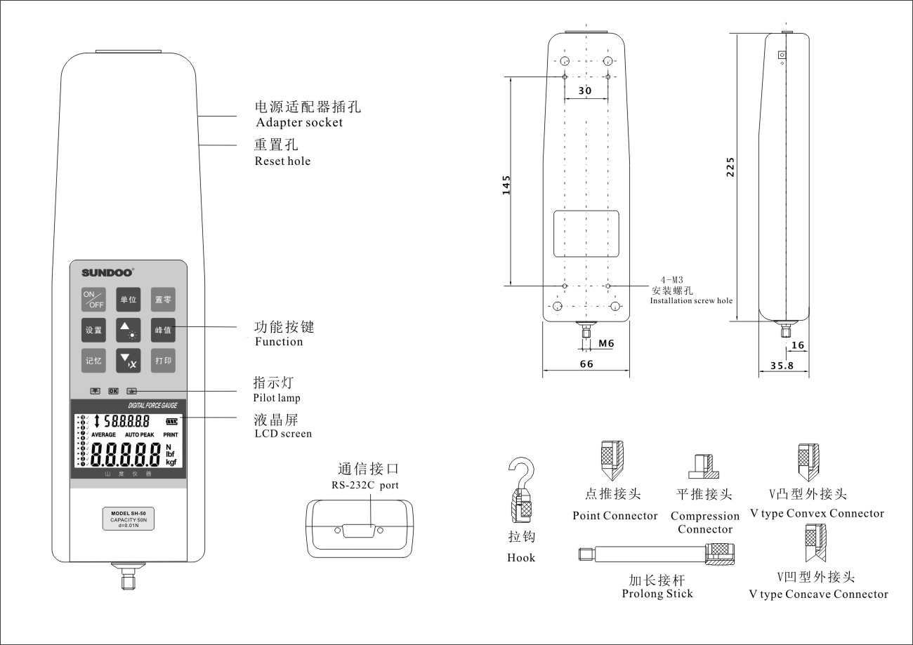 SH系列數(shù)顯式推拉力計是小型多功能高精度的推拉負荷測試儀器。適用于各種產(chǎn)品的推拉負荷測試、插拔力測試,破壞試驗等。數(shù)字顯示分辨率高,使用方便,為新一代高效高精度的推拉力測試儀器。