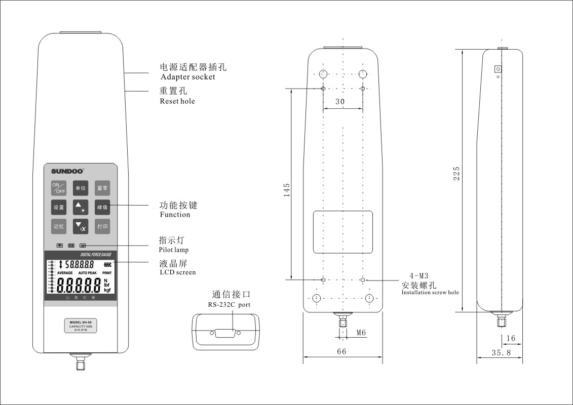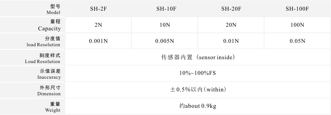 高精度高分辨率,準確度0.5級,最小讀數(shù)達0.001N; |