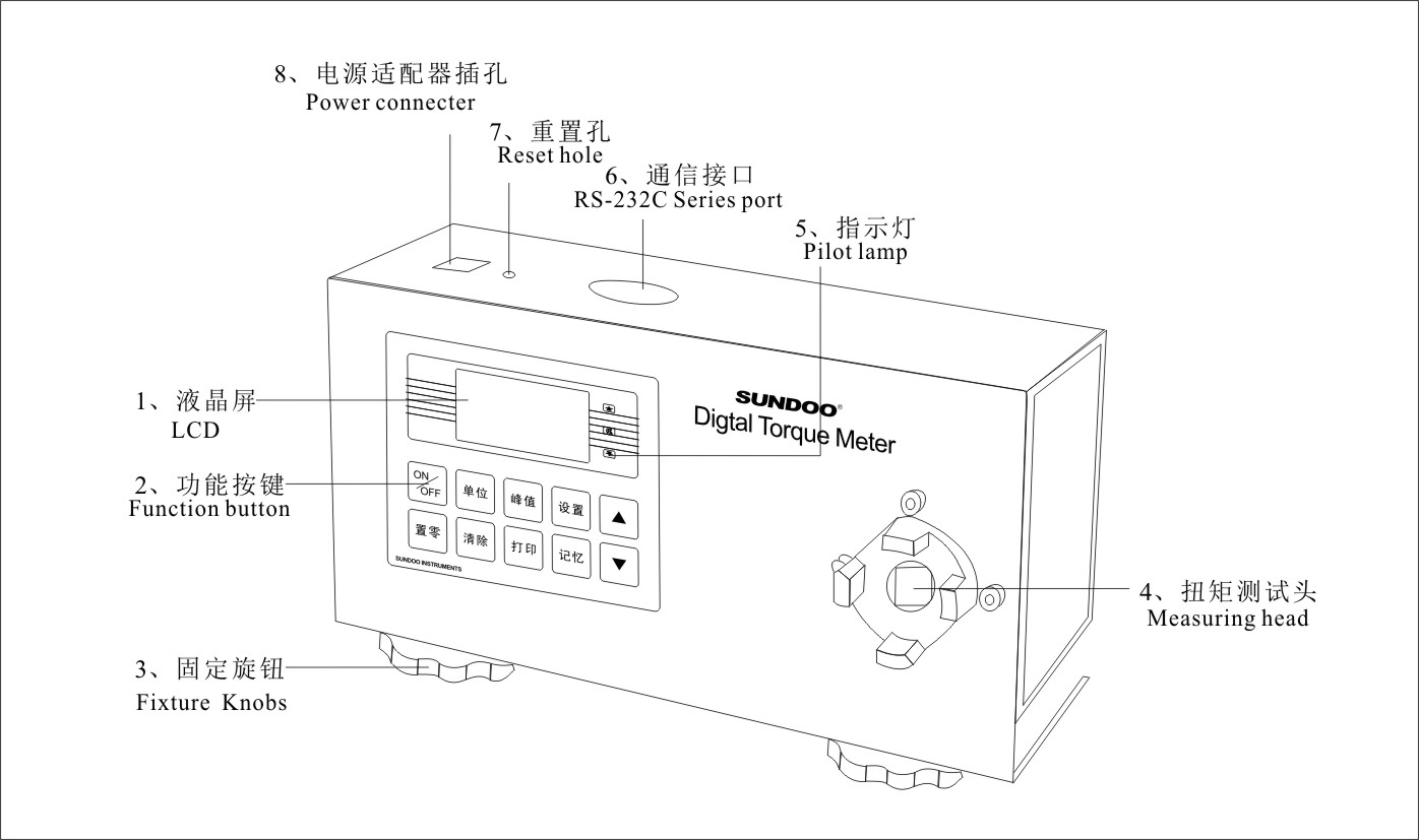 串口RS-232C輸出,連接至微型打印機(jī)或連接至電腦通過測試軟件觀看扭力值曲線。