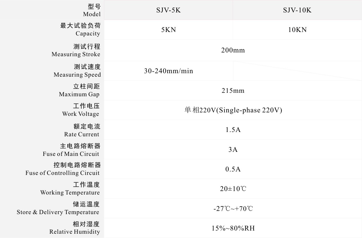 SJV-10K電動立式機臺采用雙立柱結構,具有穩(wěn)定性好,適用范圍廣,使用方便等優(yōu)點。配備推拉力計,適用于各種推拉負荷,插拔力,破壞試驗等測試。