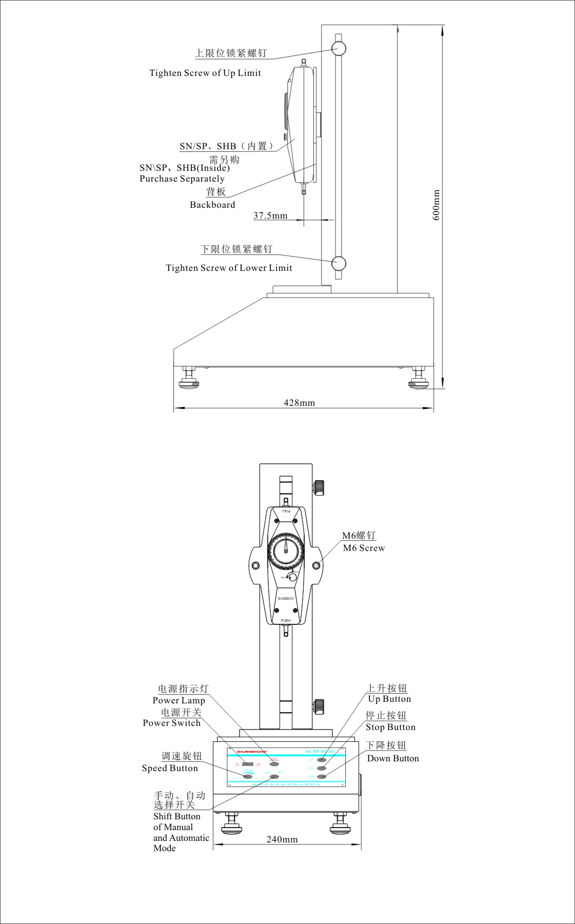 SJY-500電動立式機臺配備推拉力計,適用于各種推拉負荷,插拔力,破壞試驗等測試。本產(chǎn)品穩(wěn)定性好,適用范圍廣,使用方便等優(yōu)點,并具有無極調(diào)速,手動(點動)、自動控制切換功能。