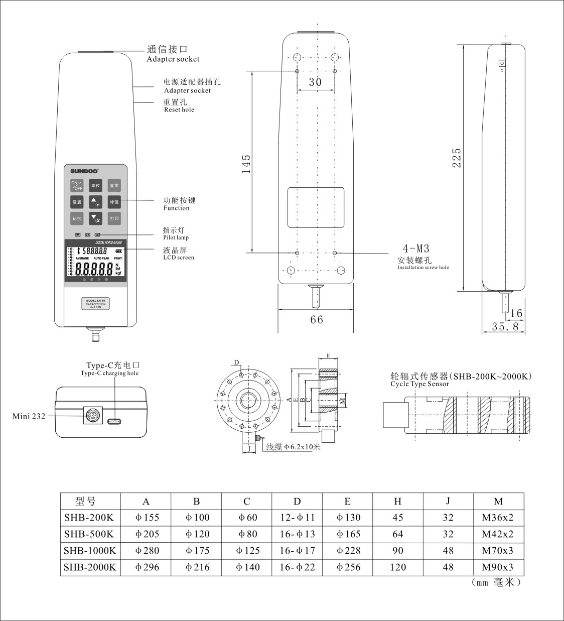 N、kgf、lbf三種單位自動(dòng)換算; |
