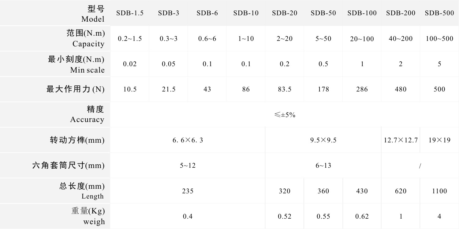 SDB系列表盤式扭力扳手是專用于有扭矩要求的螺紋緊固件的扭矩檢測工具,可廣泛用于航天航空、國防軍工、重工裝備、船舶、鐵路、礦山、工程機械、機電儀表、汽車制造和維修中心等行業(yè)。
