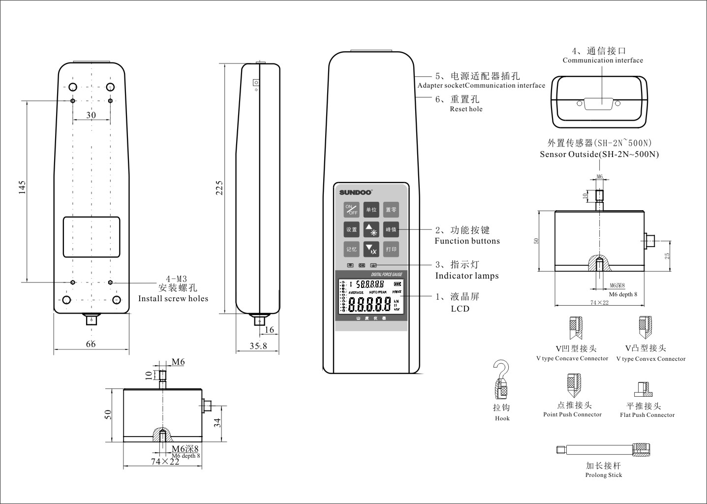 SH-B系列數(shù)顯式推拉力計是多功能高精度推拉負荷測試儀器。分體式設計,可適用特殊產品的推拉負荷測試、插拔力測試,破壞試驗等。數(shù)字顯示分辨率高,使用方便,可連接電腦同步顯示試驗力曲線圖及試驗過程記錄追溯為新一代高效高精度負荷推拉測試儀器。