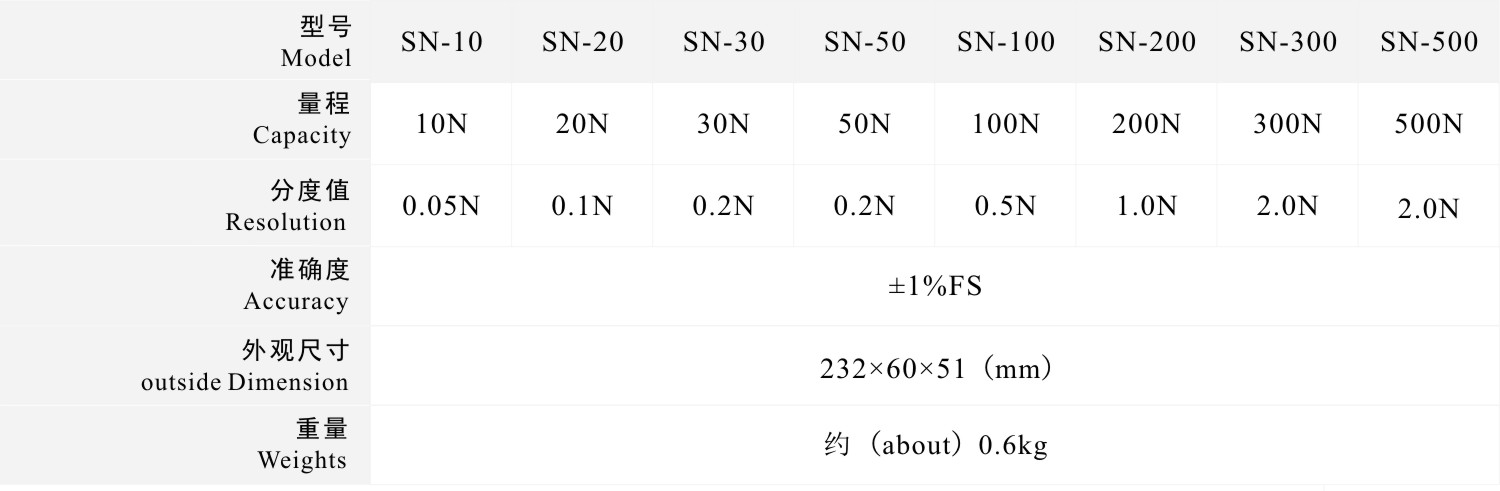 SN系列推拉力計(jì)是小型簡(jiǎn)便的推力、拉力測(cè)試儀器,具有高精度、易操作及攜帶方便之優(yōu)點(diǎn),而且有一個(gè)峰值切換操作旋鈕,可做荷重峰值指示及連續(xù)荷重值指示。適用于電子電器、輕工紡織、建筑五金、打火機(jī)及點(diǎn)火裝置、消防器材、制筆、制鎖、漁具、動(dòng)力機(jī)械、科研機(jī)構(gòu)等行業(yè)的推拉負(fù)荷測(cè)試,是代替管形推拉力計(jì)的新一代產(chǎn)品。