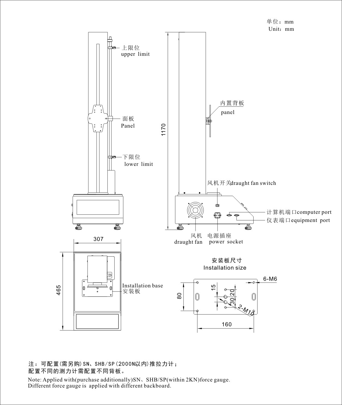 可配置(需另購):SHB/SP(2N-2000N)推拉力計,各種推拉測試工裝、夾具。