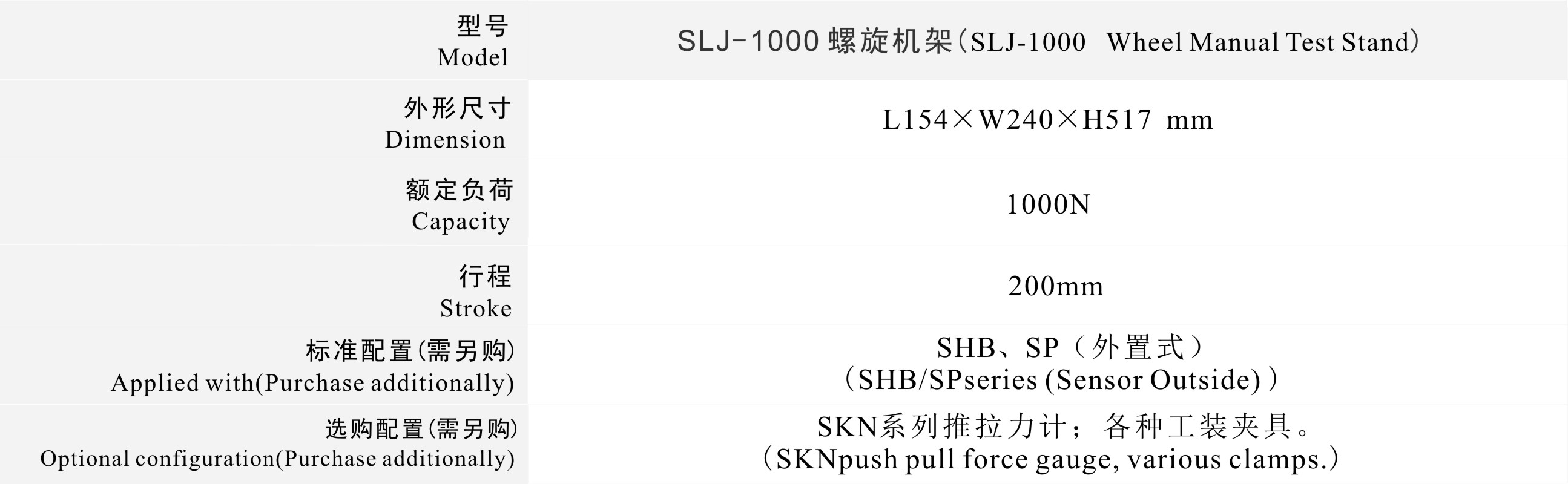 可配置(需另購(gòu)):SHB-1K、SP-1k(外置式)推拉力計(jì)、各種工裝夾具。