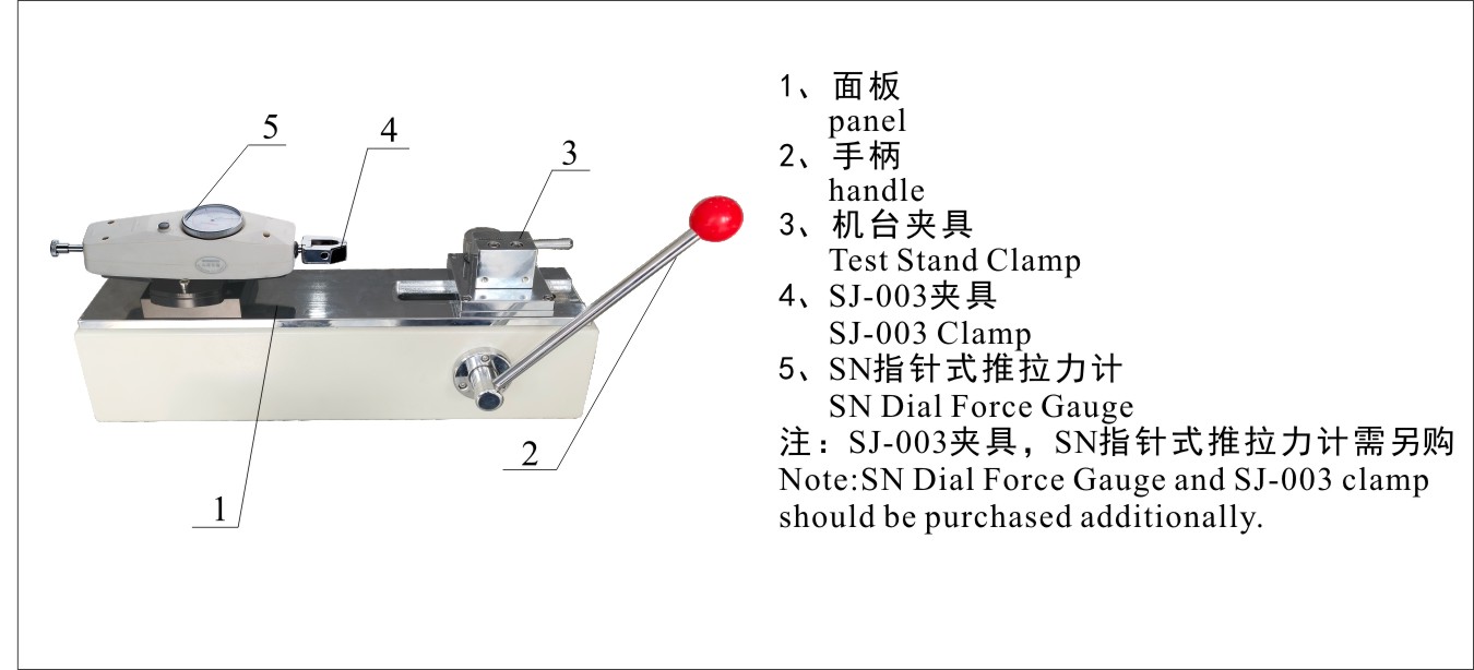 可配置(需另購):SN/SHB、SP(內(nèi)置式)推拉力計、各種推拉測試工裝夾具。